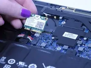 Снимите два провода, подключенных к WiFi карте, с помощью нейлоновой лопатки.