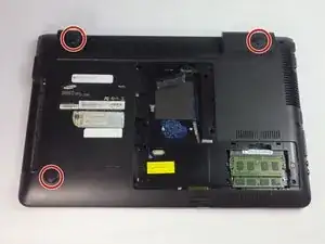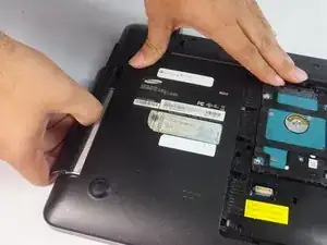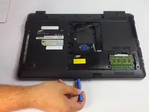 С помощью пластикового инструмента для открывания вставьте его между задней панелью и корпусом ноутбука.