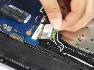 Осторожно отсоедините разъёмы от Wi‑Fi карты.