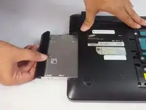 Используйте плоский пластиковый инструмент или пальцы, чтобы аккуратно вытолкнуть оптический привод.
