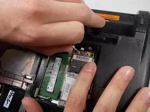 Найдите два винта Philips #000 длиной 1.2 мм, которые крепят нижнюю крышку к ноутбуку.