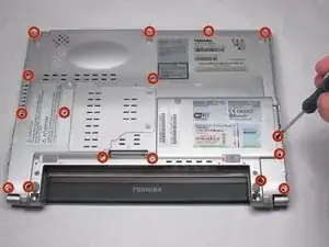 Удалите шестнадцать винтов в показанных местах крестовой отверткой Phillips 00.