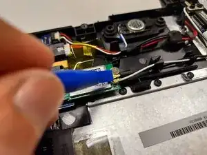 Используйте отвертку Phillips #1, чтобы вынуть два винта длиной 7 мм, фиксирующие батарею.