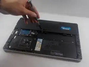 После удаления винтов осторожно приподнимите заднюю панель и выдвиньте её, чтобы отсоединить от корпуса ноутбука.