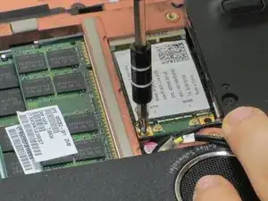 Снимите два винта с крестообразной головкой, расположенные со стороны отсека для батареи на Wi‑Fi карте.