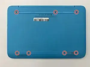 Отвинтите семь винтов 0,4 мм на задней панели ноутбука крестовой отвёрткой Phillips #0.