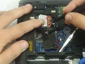 С помощью отвертки Phillips #0 удалите винт на 1.5 мм, удерживающий карту Wi-Fi на месте. После удаления винта аккуратно поднимите карту от ноутбука.