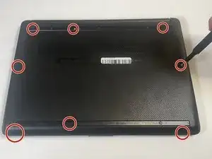 Переверните ноутбук так, чтобы нижняя крышка была сверху.