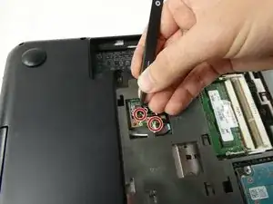 Отвинтите один винт 2,5 мм крестовой отверткой Phillips #0, крепящий модуль Wi‑Fi.