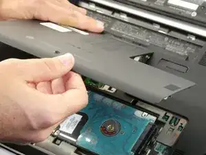 Сдвиньте сервисную крышку от отсека аккумулятора, чтобы снять её.
