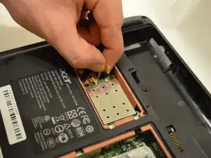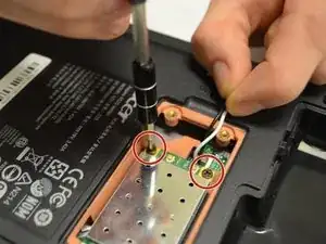 Выверните два чёрных винта 0,5 мм Phillips №1, удерживающих WiFi-модуль.