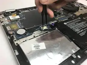 Используйте пинцет, чтобы отсоединить батарею от материнской платы.