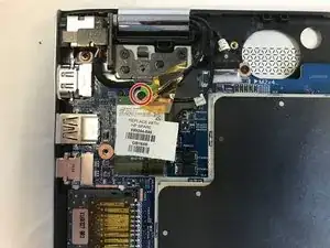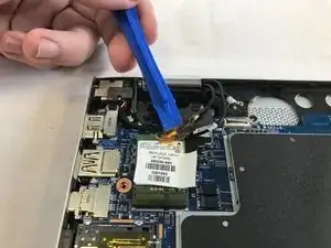 Используйте пластиковый инструмент для вскрытия, чтобы отсоединить два кабеля, подключенные к модулю Wi‑Fi.