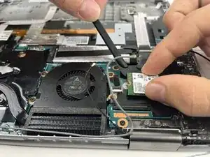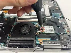 Отвинтите винт длиной 3 мм от Wi‑Fi‑карты с помощью отвёртки Phillips #0.