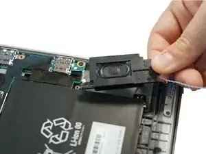 Проследите ленточный кабель, идущий от левого динамика к материнской плате.