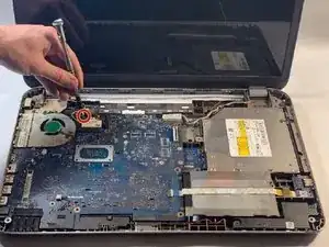 Используя крестовую отвертку, удалите один винт длиной 3 мм, фиксирующий WLAN-карту в ноутбуке.