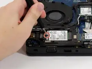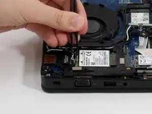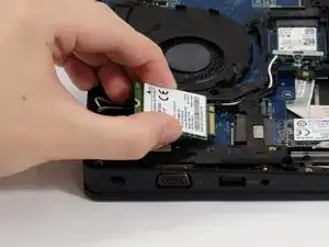 Аккуратно вытяните WWAN‑модуль со стороны задней части, от края, где находились антенны и скоба.