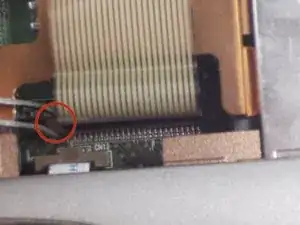 Следуйте за кабелем до его подключения и используйте зажимные пинцеты, чтобы разблокировать кабель, захватив левую сторону замка и потянув вверх.