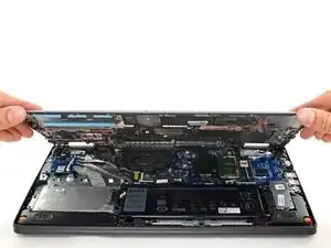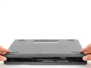 Если задняя крышка прилипла к корпусу ноутбука, используйте пластиковую лопатку, чтобы провести по периметру задней крышки и освободить оставшиеся зажимы.