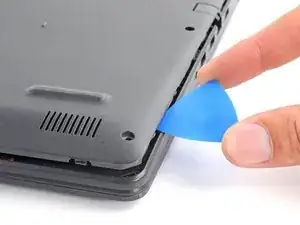 Вставьте пластиковую лопатку между нижним левым углом задней крышки и корпусом ноутбука.