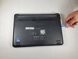 Воспользуйтесь инструментом для вскрытия, чтобы отжать заднюю крышку от корпуса ноутбука.