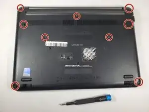 Переверните ноутбук так, чтобы задняя панель была сверху.