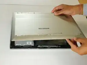 Поднимите заднюю крышку ноутбука.