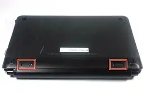С дном HP Mini, обращенным вверх, сдвиньте оба переключателя внутрь к центру.