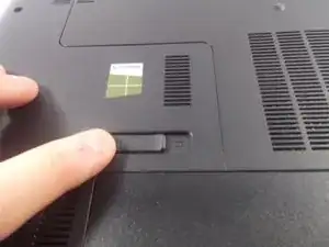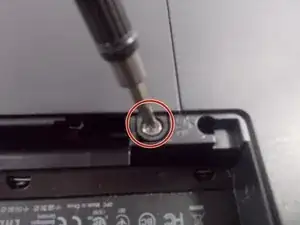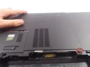 В отсеке для аккумулятора найдите винт с крестообразным шлицем, который удерживает заднюю панель на компьютере. Открутите его.