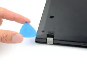 Вставьте открывающую лопатку между задней крышкой и корпусом устройства у угла петли.