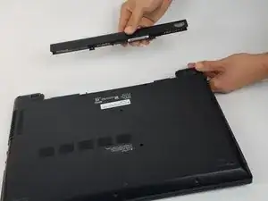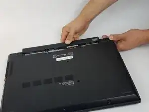 Вытяните батарею, держа ее горизонтально и параллельно ноутбуку для легкости извлечения.