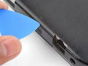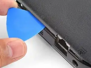Вставьте конец инструмента для вскрытия в шов задней крышки рядом с разъемом ethernet.