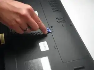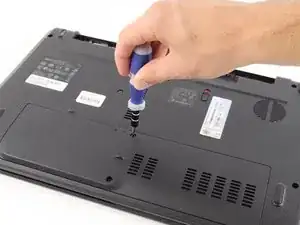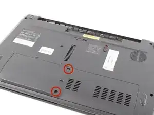 Теперь найдите два винта, которые крепят заднюю панель к ноутбуку.