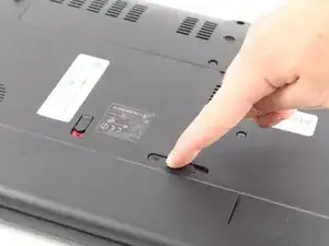 Затем переместите другой переключатель, пока символ разблокировки еще отображается. Аккумулятор должен подняться и больше не будет заподлицо с основанием ноутбука.
