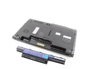 Теперь удалите аккумулятор, поднимая его из ноутбука со стороны, ближайшей к переключателям.