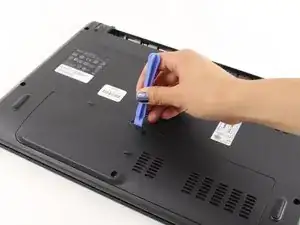 После того, как пластиковый инструмент ослабил панель, возьмите палец, поместите его в зазор и удалите панель из ноутбука.