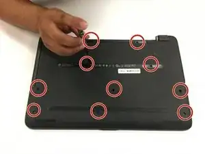Используя крестообразную отвертку PH1, выкрутите все винты длиной 5/16 дюйма с задней части устройства.
