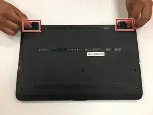 Сдвиньте два фиксатора батареи на задней части устройства в положение «открыто».
