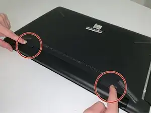 Аккумулятор выйдет с усилием, убедитесь, что ничего хрупкого не находится рядом с ноутбуком в процессе.