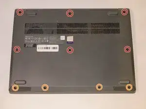 Переверните ноутбук и разместите его на плоской поверхности, чтобы получить доступ к винтам на задней крышке.