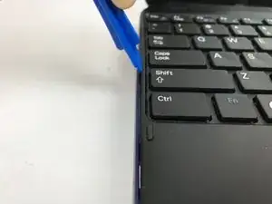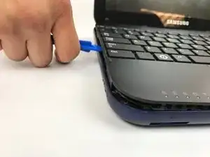 Вставьте пластиковый инструмент для открывания в зазор между задней панелью и клавиатурой.