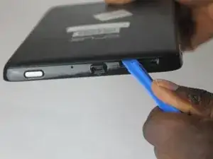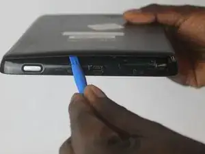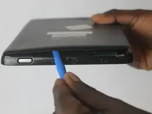 Вставьте небольшой инструмент для вскрытия между задней панелью и планшетом.