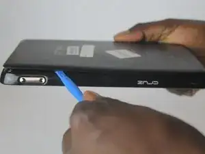 Вставьте пластиковый инструмент для вскрытия в слот SD-карты. Заострённая часть должна быть направлена к задней панели.