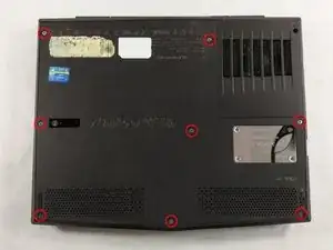 Ослабьте восемь крепежных винтов на нижней части компьютера с помощью маленькой крестовой отвертки.