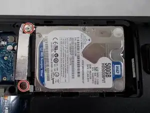 Удалите два винта Philips #00 длиной 4 мм, которые удерживают жесткий диск на месте.