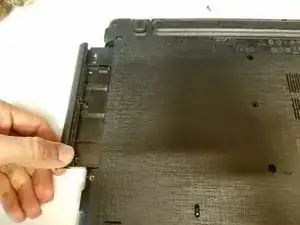 Поднимите левую сторону корпуса и отключите кабель динамика перед тем, как полностью снять дно.