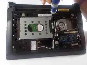 Удалите единственный винт Phillips #1 1.2 мм, крепящий жесткий диск.