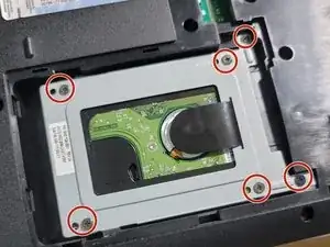 Используя отвертку Phillips #1, удалите шесть винтов диаметром 1,2 мм, крепящих жесткий диск.