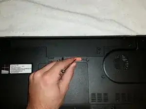 Переверните ноутбук и найдите отсек аккумулятора.