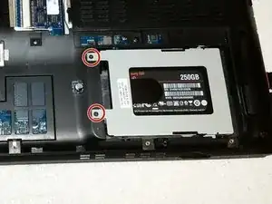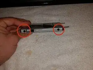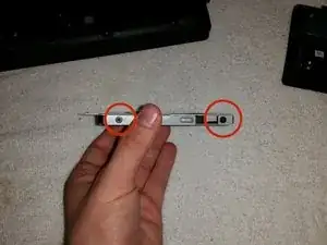 Снимите два винта, удерживающие салазки жесткого диска на месте.